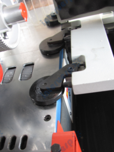 - Дополнительный поднимающийся подающий ролик обеспечивает дополнительную плавность при подаче коротких деталей.