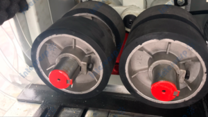 - Привод подающих роликов осуществляется через карданную передачу, за счет этого достигается синхронность и плавный ход заготовки. В отличие от цепного привода исключаются рывки и «дерганье», а также не требуется подтяжка на протяжении всего срока эксплуатации.