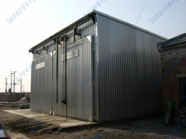 Дверь камеры выполнена по конструкции с внутренней рамой из алюминиевого сплава и внешней обшивкой из алюминиевого сплава, что делает дверь более прочной и долговечной, а также предотвращает ее деформацию. Использование двусторонних смотровых дверей (передней и задней) значительно упрощает всестороннее наблюдение и контроль за штабелем пиломатериалов.