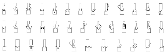 Верхний пуансон универсальной формы для стандартных изгибов с быстрозажимным креплением, а нижняя матрица имеет двойную концентрическую форму V образного ручья.
